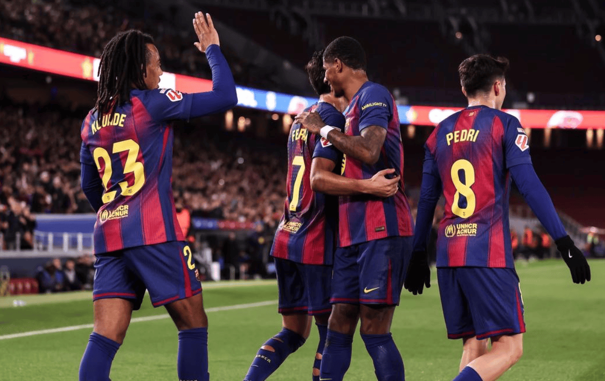 巴萨派出了常见的4231阵型,费兰·托雷斯出任最前面的攻击手。亚马尔、拉菲尼亚和拉什福德组成了锋线三叉戟,负责突破奥萨苏纳的防线。中场方面,埃里克·加西亚和佩德里搭档组成双后腰。防线上,孔德、库巴西、赫拉德·马丁和阿莱士·巴尔德担任四名后卫,组成稳固的防守体系。门将位置上,霍安·加西亚首发出战。替补席上则有莱万多夫斯基、德容和费尔明·洛佩斯等强劲的替补力量。比赛一开始,巴萨便掌控了场上节奏,不断给奥萨苏纳施加压力。第15分钟,亚马尔精准起脚传中,费兰·托雷斯迅速跑位,门前包抄准备射门,但遗憾地将球打高了。仅过了4分钟,佩德里带球内切,试图以一脚远射攻门,但球踢向了近角,门将稳稳地将球扑住。紧接着,加西亚也尝试了一脚远射,不过球稍稍偏出了目标。第25分钟,费兰·托雷斯头球攻门,虽然球打进了网,但由于越位在先,进球被判无效。接下来,第40分钟,费兰·托雷斯再次迎来好机会,他完成了一记倒钩射门,但球稍稍偏出,错失良机。上半场结束时,双方依旧没有进球,比分保持在0-0。下半场开始后,比赛继续由巴萨主导。第48分钟,拉什福德利用任意球机会直接射门,然而被奥萨苏纳门将神勇扑出。到了第68分钟,拉菲尼亚在中圈附近突然起脚远射,尝试吊门,却因为角度问题稍微偏离了目标。比赛进行到第70分钟时,巴萨终于打破僵局。佩德里送出精准传球,拉菲尼亚停球后立即起脚远射,皮球划出一道弧线,直入球门死角!1-0,巴萨领先了!虽然第85分钟时,埃兰多用凌空抽射破门,但因手球犯规,进球被判无效。然而巴萨的进攻并没有停歇,紧接着,拉菲尼亚再次展现出敏锐的门前嗅觉,在混乱中捡漏破门,完成梅开二度。最终,巴萨以2-0击败奥萨苏纳,拿下了这场比赛。